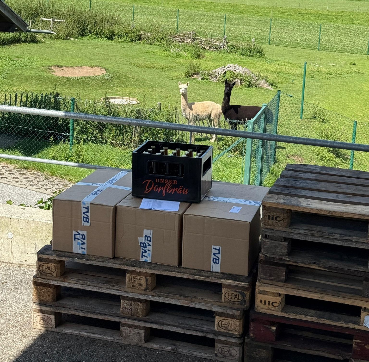 ๐Ÿ’  Das zumindest kรถnnte man annehmen, wenn man hier die dort heimischen Alpakas hinter unserer Lieferung auf der Weide stehen sieht…
